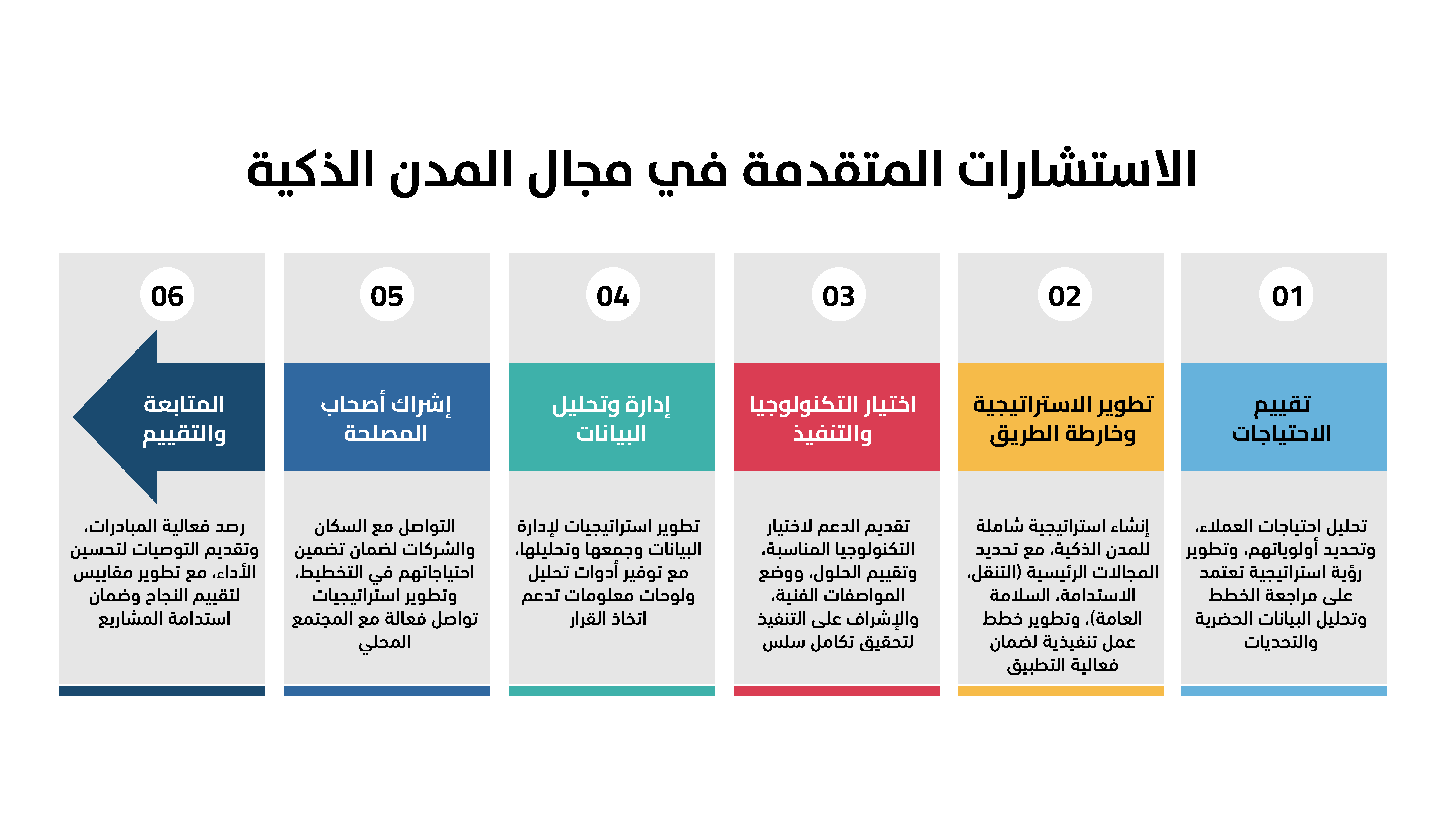 نتميز تقديم مجموعة من الخدمات الاستشارية لمساعدة العملاء في تخطيط وتصميم وتنفيذ مبادرات المدن الذكية. تشمل بعض الخدمات الرئيسية التي يمكنك تقديمها: